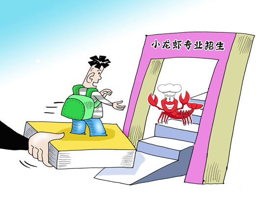 有人很疑惑,小龍蝦也是?是不是太奇葩了?仔細想一想,小龍蝦設置成,有其內在邏輯——這是一個正經“飯碗”。龍蝦學院目前設有餐飲管理、烹飪工藝與營養、市場營銷三類,錄取至“小龍蝦”的學生要修完教學計劃規定的課程,經考核成績合格者,頒發普通專科畢業證書,還有校企合作為就業“保駕護航”。