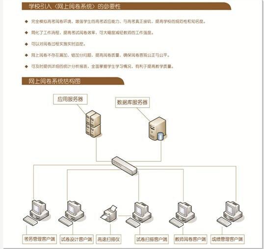 河北品科信息科技公司多年致力于網上閱卷系統的集成和開發,多項特有技術通過了國家有關部門的嚴格測試并居于全國行業領先水平。《品科網上閱卷系統》是將現代的圖像識別、壓縮、分割技術與高速圖像掃描設備相結合而產生的一項效率高數字化信息系統,系統經過嚴密設計,并結合實際閱卷需要,成功的將國內的計算機網絡技術與教師閱卷工作結合在一起。在充分考慮用戶需求和使用狀況的基礎上,經過優化、整合設計流程,使考試管理功能更加嚴謹科學,教師閱卷更加靈活快捷,充分體現了其實際效益和推廣意義。